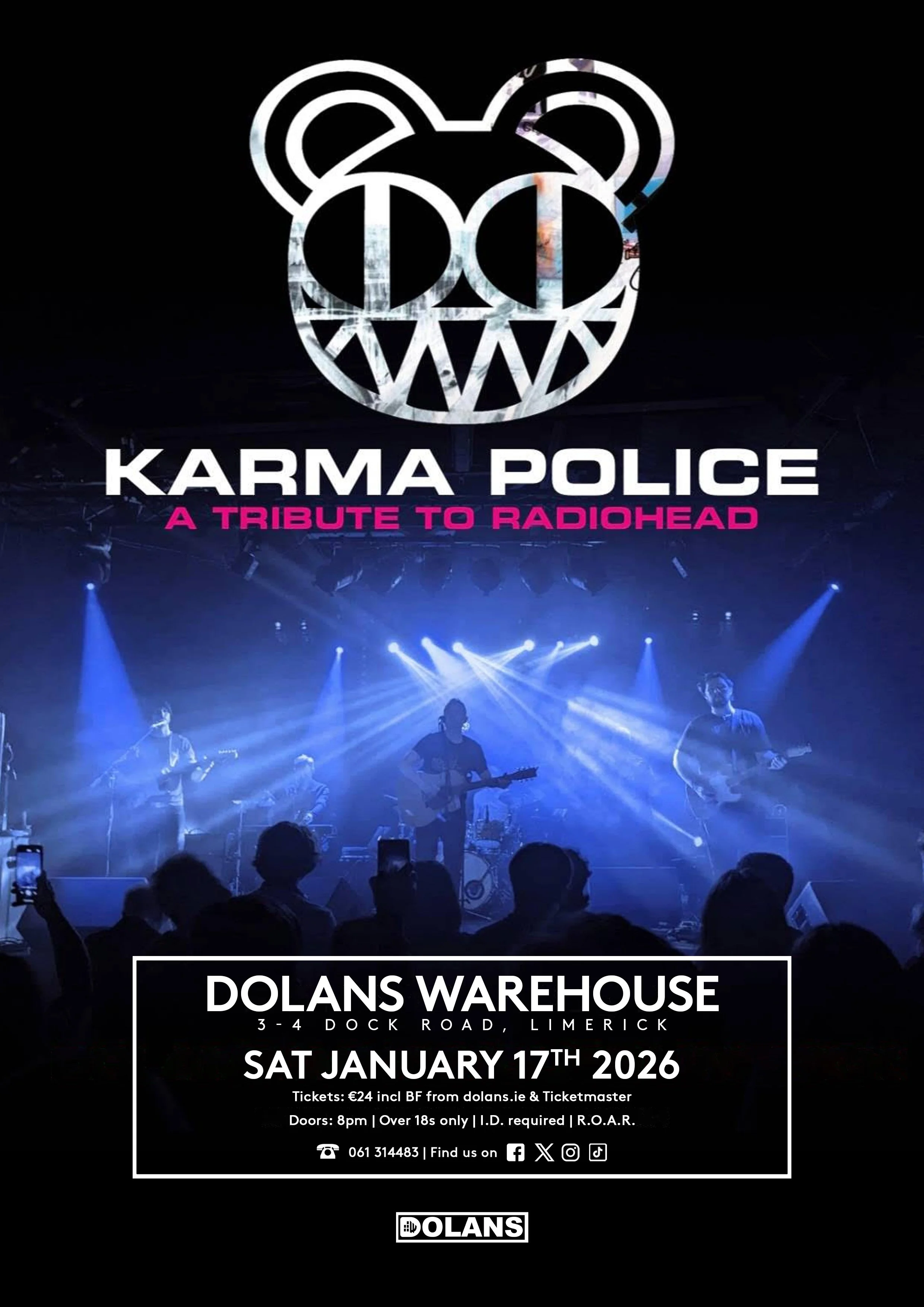 Karma Police, a six-piece band made up of some of the most in demand session musicians, perfectly recreate the best of Radiohead, playing anthems like; 'Creep', 'High and Dry', 'Fake Plastic Trees', 'Paranoid Android', 'Street Spirit (Fade Out)', 'Pyramid Song', '15 Steps' and many, many more.