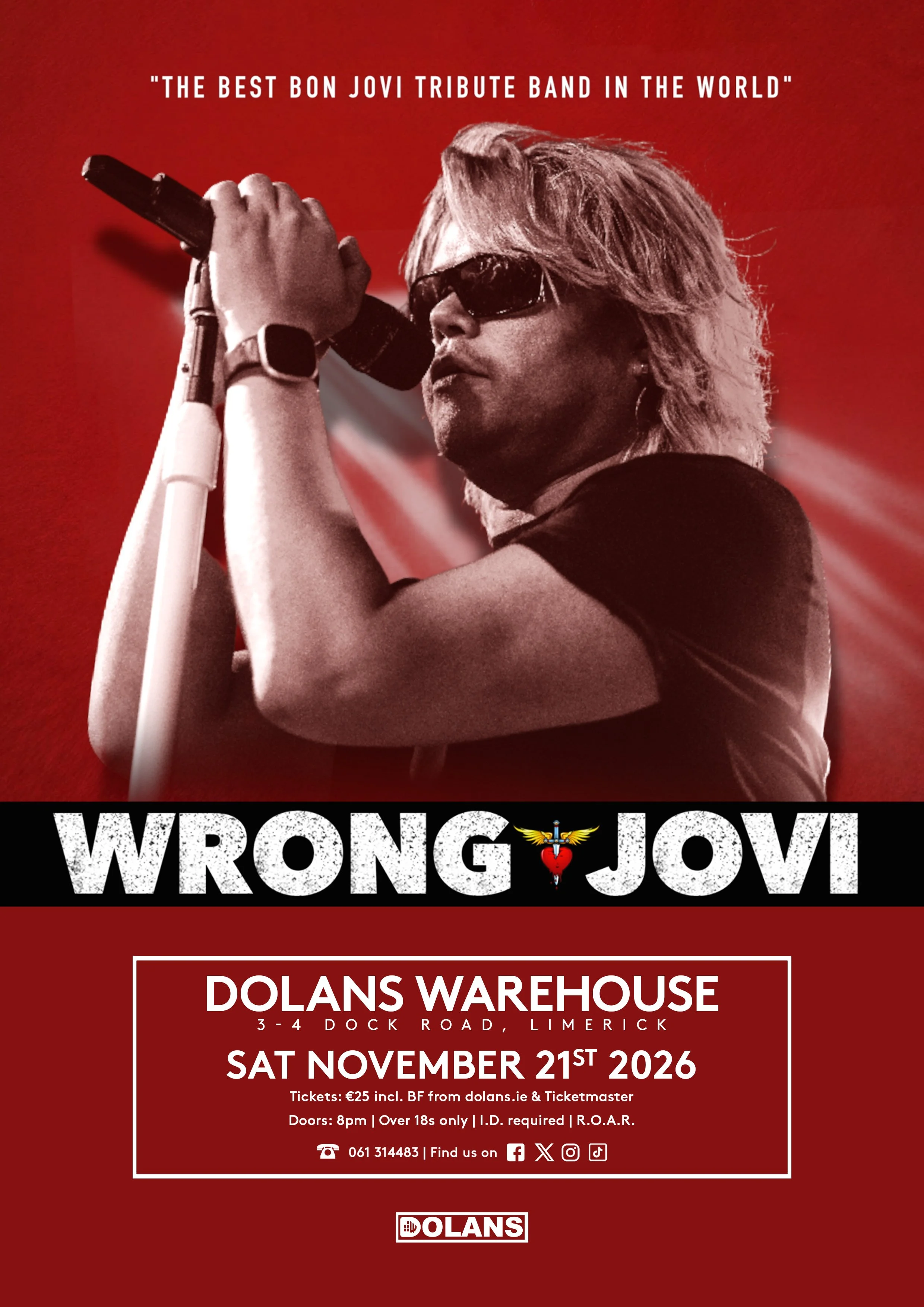 Wrong Jovi are the The Best Bon Jovi Tribute Band In The World. Described by tribute band expert (Channel 4’s The Convention Crasher) and TV celebrity Justin Lee-Collins. In 2022 the band were crowned the "Best Tribute Artist" at the National Entertainment Awards Ceremony in Essex, having previously won the "Best Tribute Artist" in the Northern Regional Entertainment Awards in September.Wrong Jovi features some of the UKs finest professional musicians. With a set list crammed full of sing-along anthems, live favourites and rarities, audiences are guaranteed the ultimate Bon Jovi tribute show.