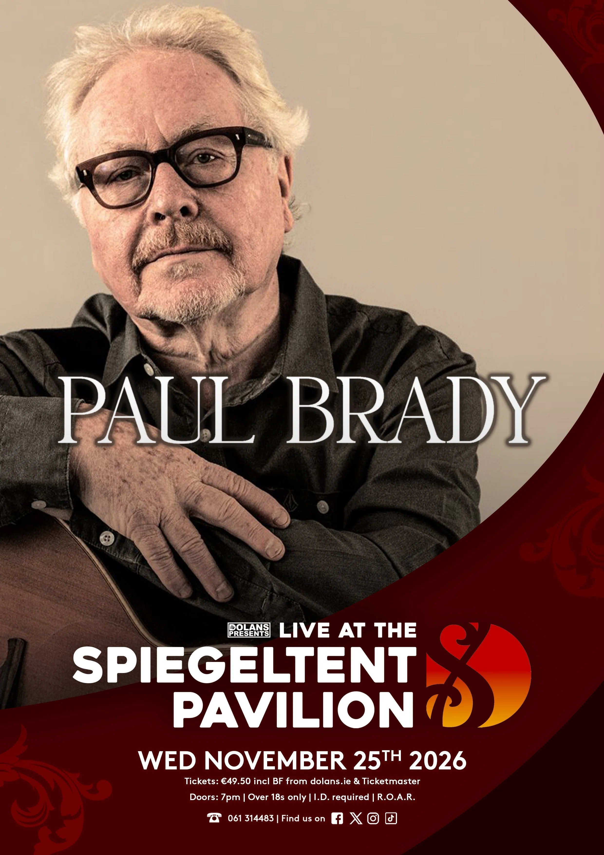 Irish music legend Paul Brady will take to the stage this November, bringing with him a catalogue of timeless songs including The Island, Arthur McBride and Nobody Knows. Known for his powerful and intimate live performances, Brady remains one of Ireland’s most respected and enduring artists, with a career spanning over four decades.
