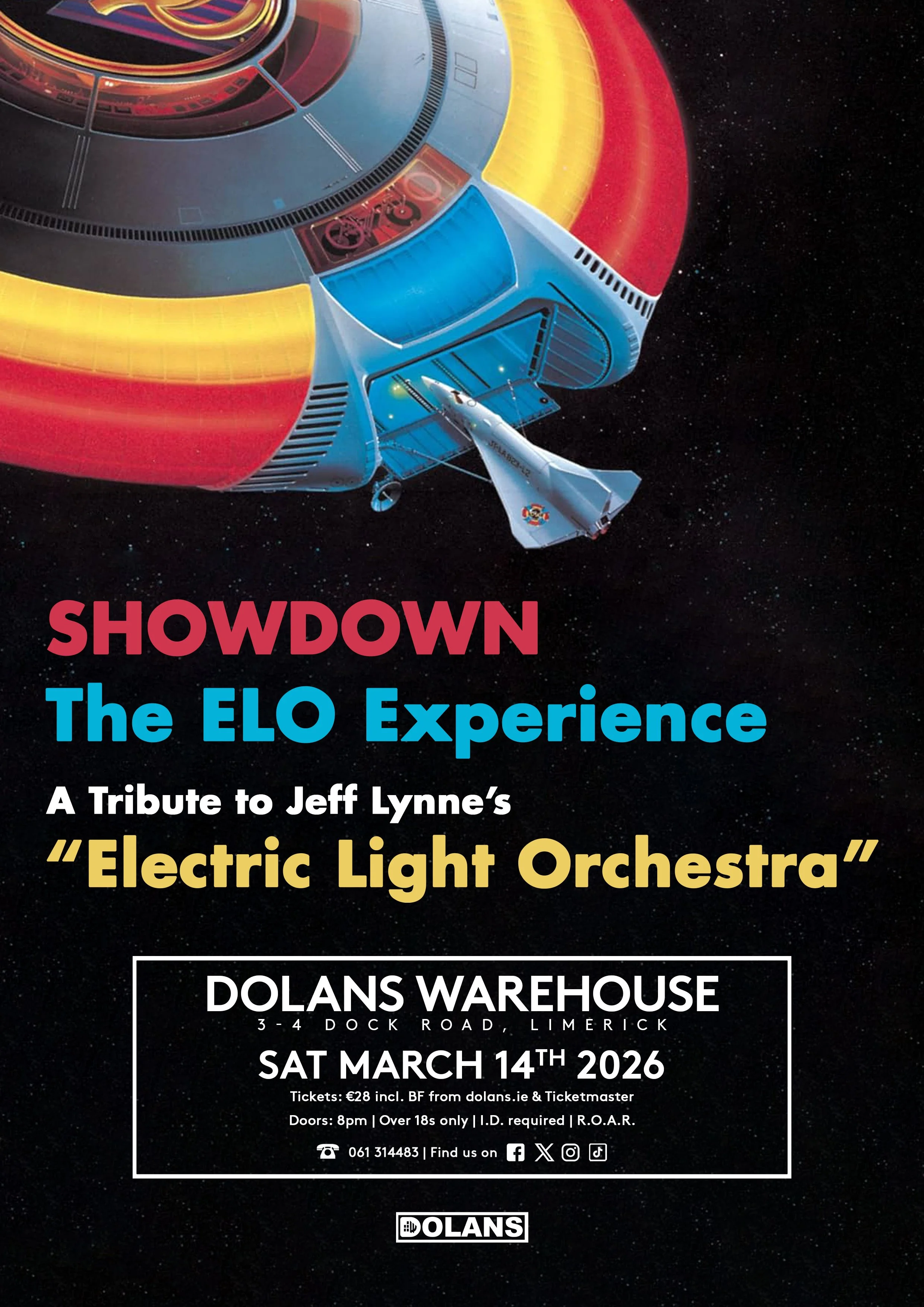 Showdown - The E.L.O. Experience" is a live band tribute show that performs Electric Light Orchestra (ELO) music, featuring hits like "Evil Woman," "Showdown," and "Mr. Blue Sky". The band, comprised of talented Irish musicians, recreates ELO's classic sound with a 7-piece live band, including a string section and multi-part vocal harmonies, along with "stunning visuals" to provide an authentic Jeff Lynne ELO experience
