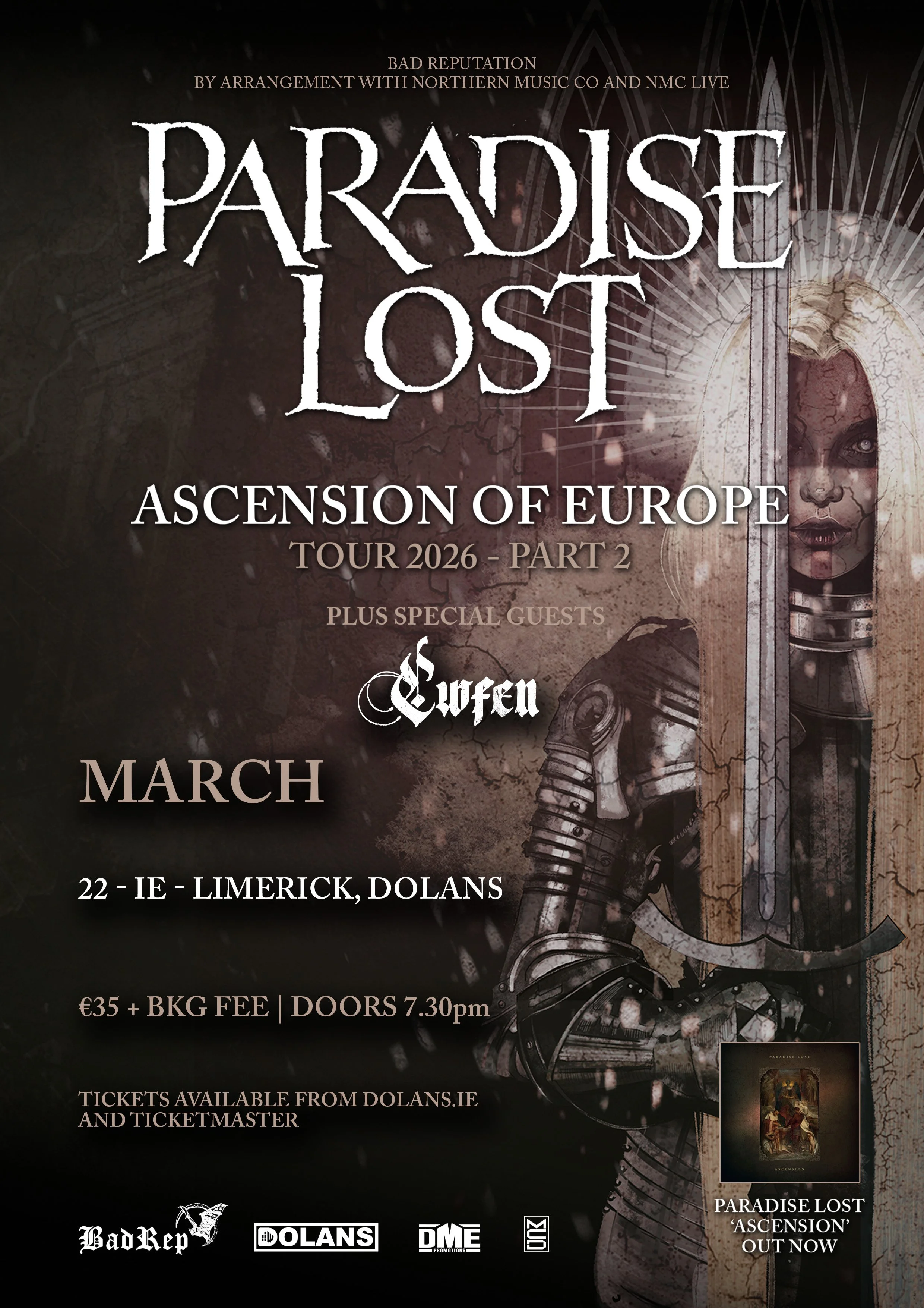 Paradise Lost Live in Dolans Limerick on March 22nd 2026 (Fully standing\ Over 18’s)