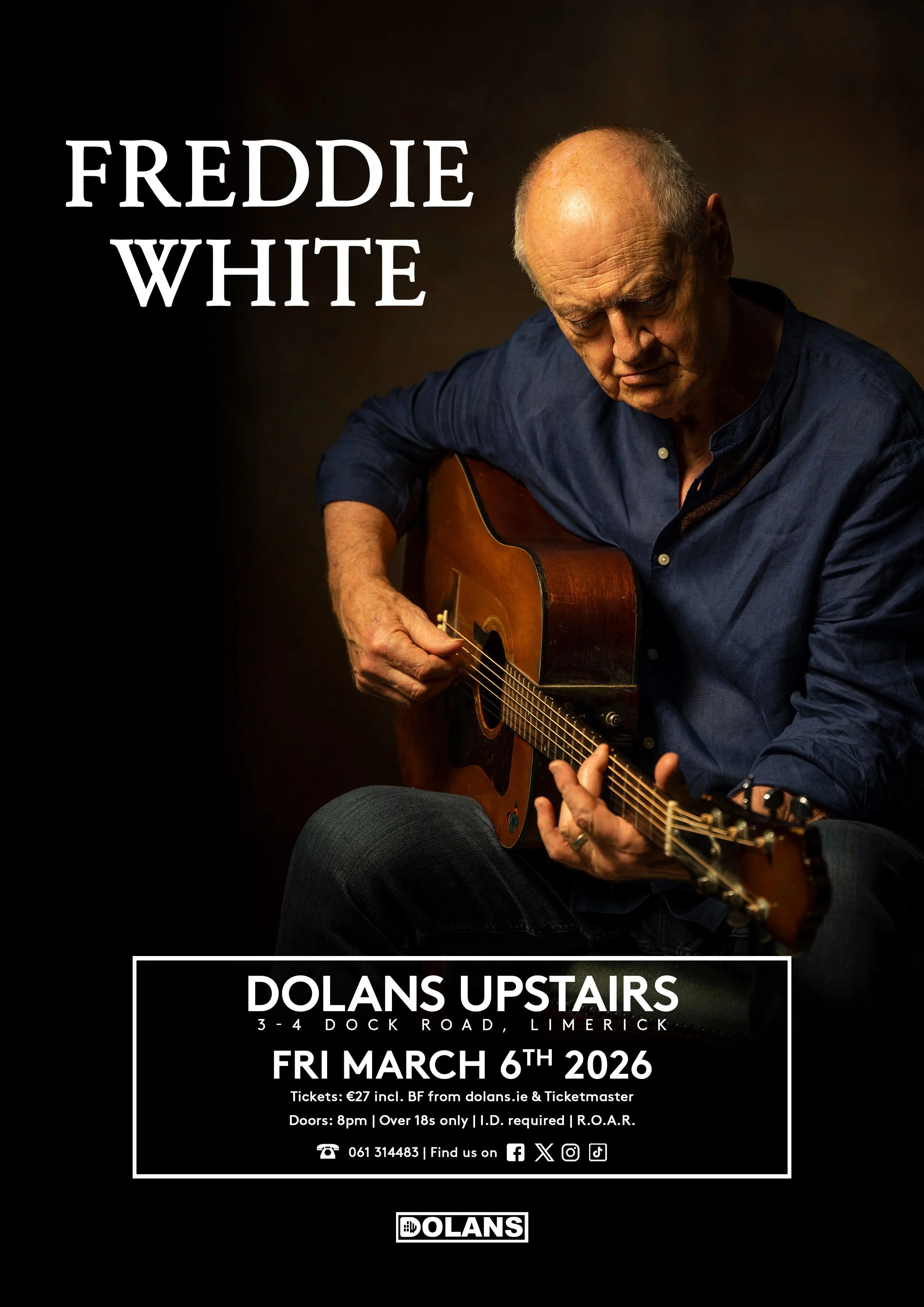 Freddie White is a masterful guitar player, singer-songwriter and interpreter of songs who has captivated audiences in Ireland and beyond with his emotive performances. With a career spanning decades, Freddie continues to be a luminary in the music industry, leaving an indelible mark on those who have the privilege of experiencing his live shows.