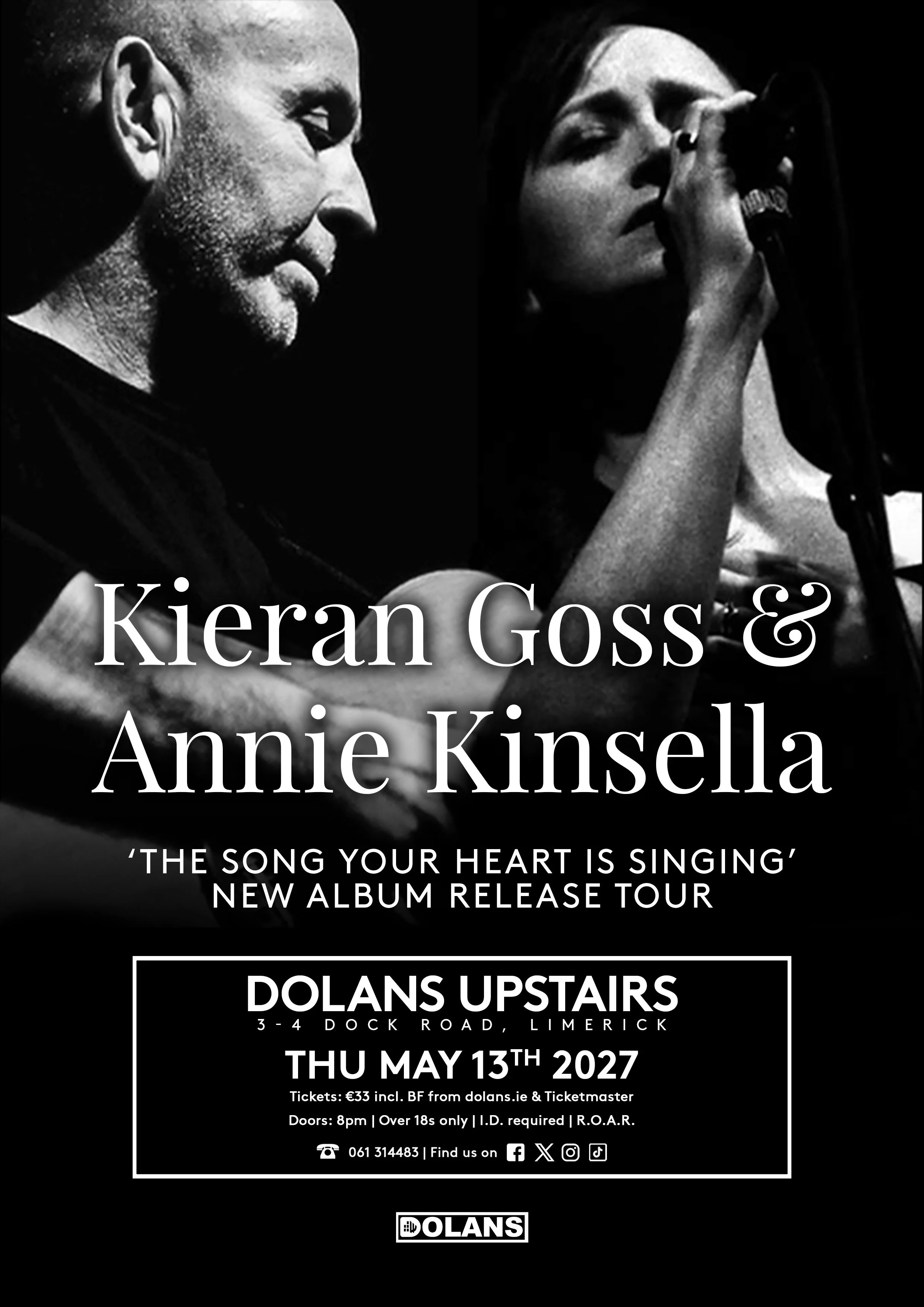 Irish duo Kieran Goss and Annie Kinsella release their much anticipated second album: ‘The Song Your Heart Is Singing’ in January 2027 and to celebrate, have announced details of an extensive nationwide Irish tour. We are delighted to announce that this award winning duo will be coming to Dolans on Thursday 13th May 2027 @ 8pm
