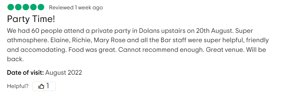 We would love to hear what you think of Dolans. Please let us know at info@dolans.ie Here are some of the things people say about us.