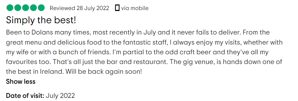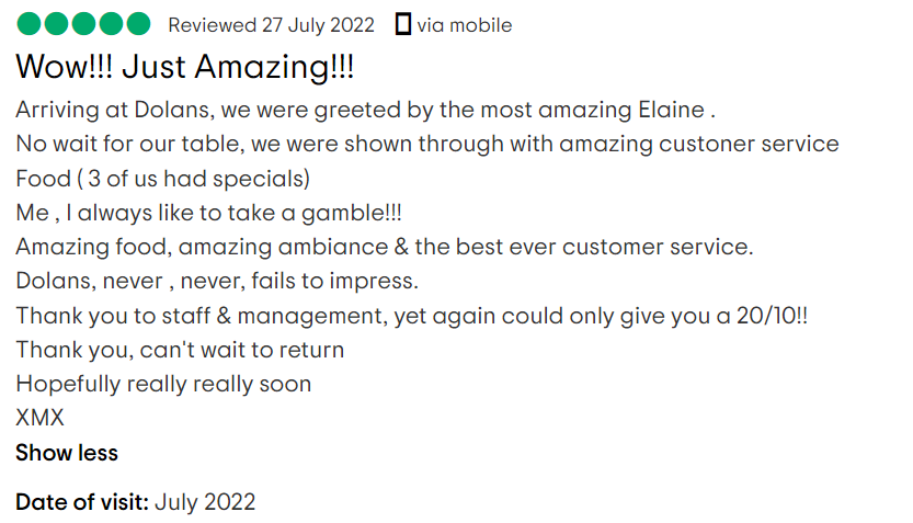 For more reviews you can view Dolan's on Google and tripadvisor.